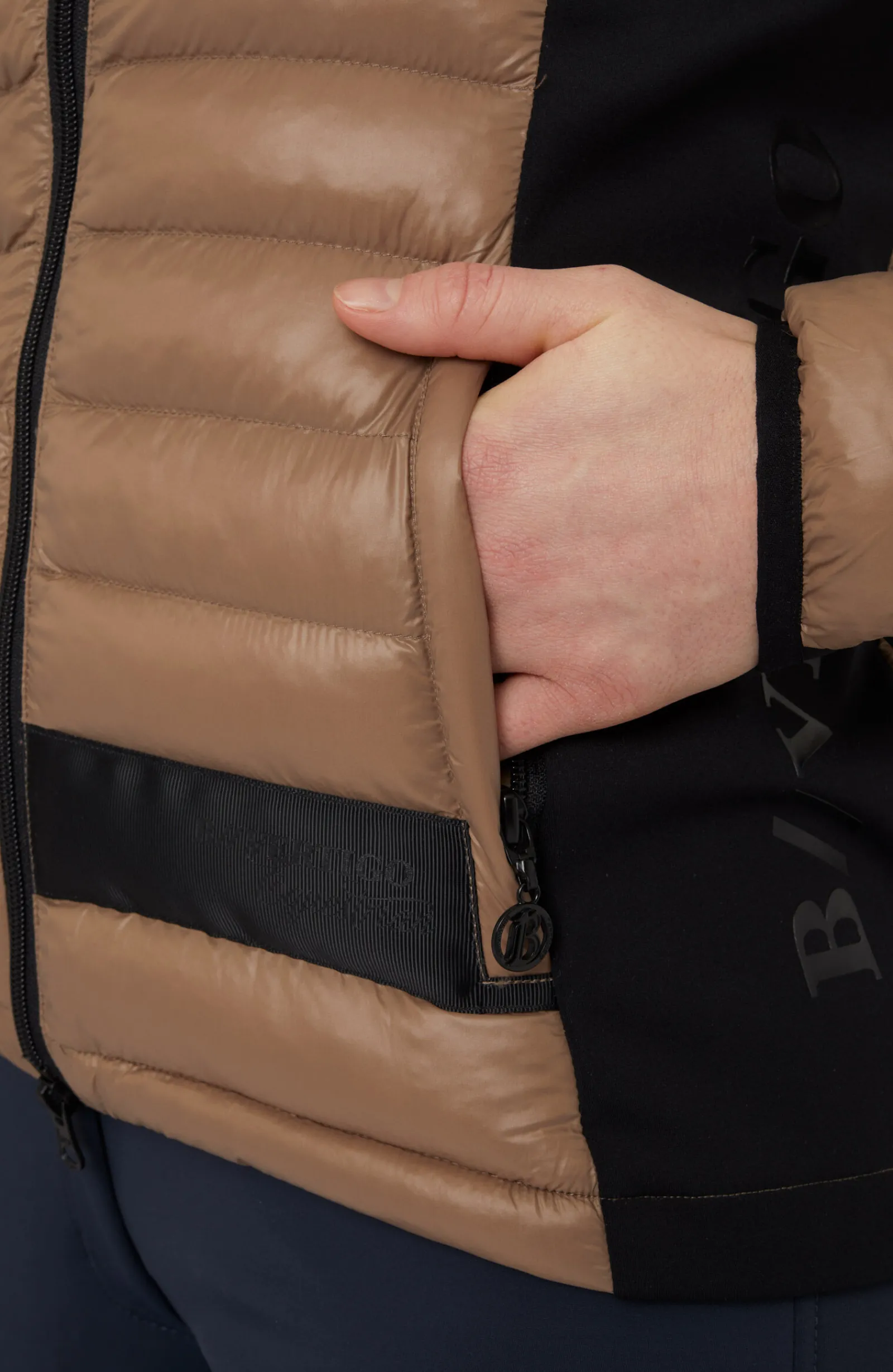 Skallstoff og innside: 100% polyamid.Fôr: 100% polyester.Paneler med detaljer: polyester/elastan.