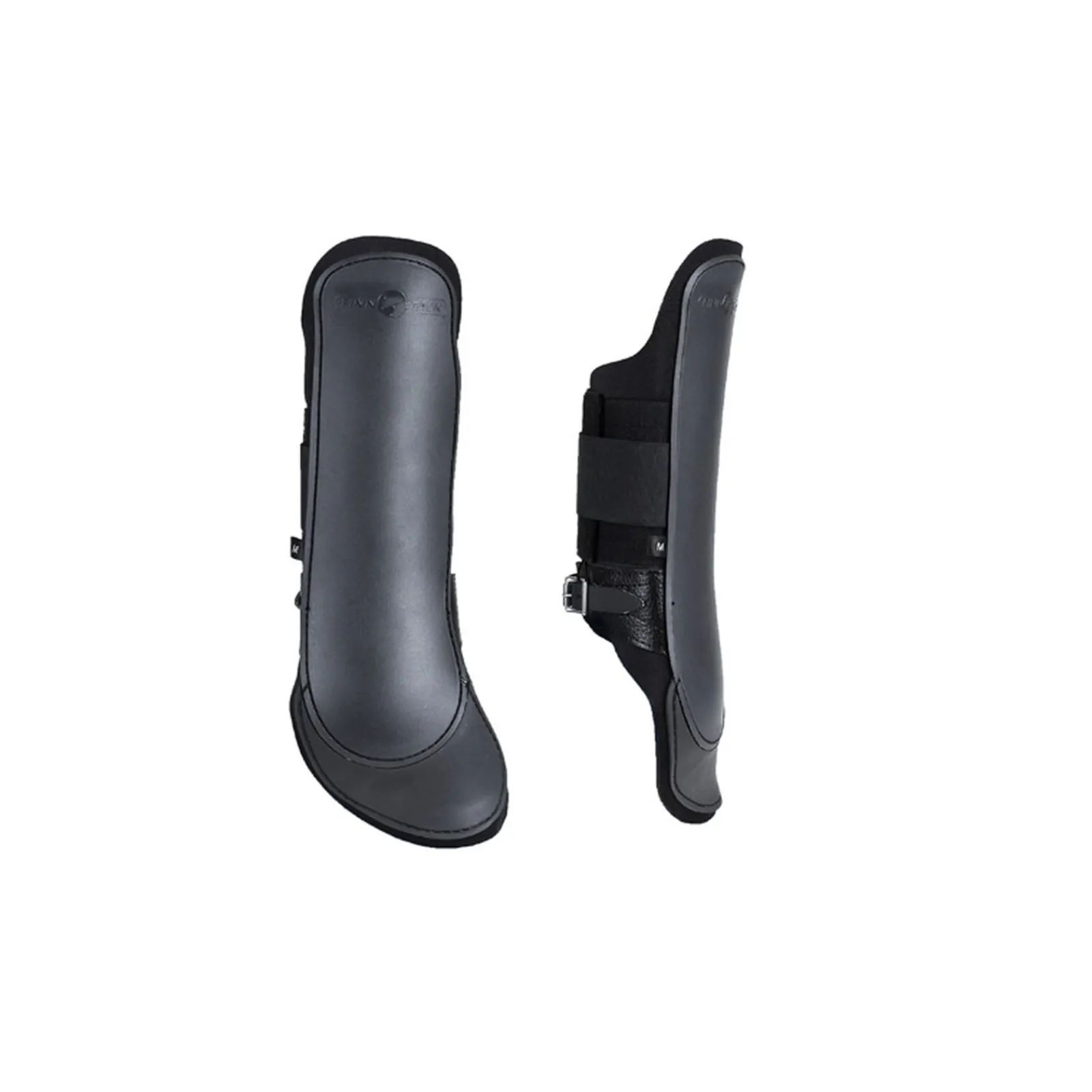 Beinbelegg med høyt skaft. Lukkes med en stropp og tre borrelås. Kraftig plast med neoprenfôring. Fås i 3 forskjellige lengder.