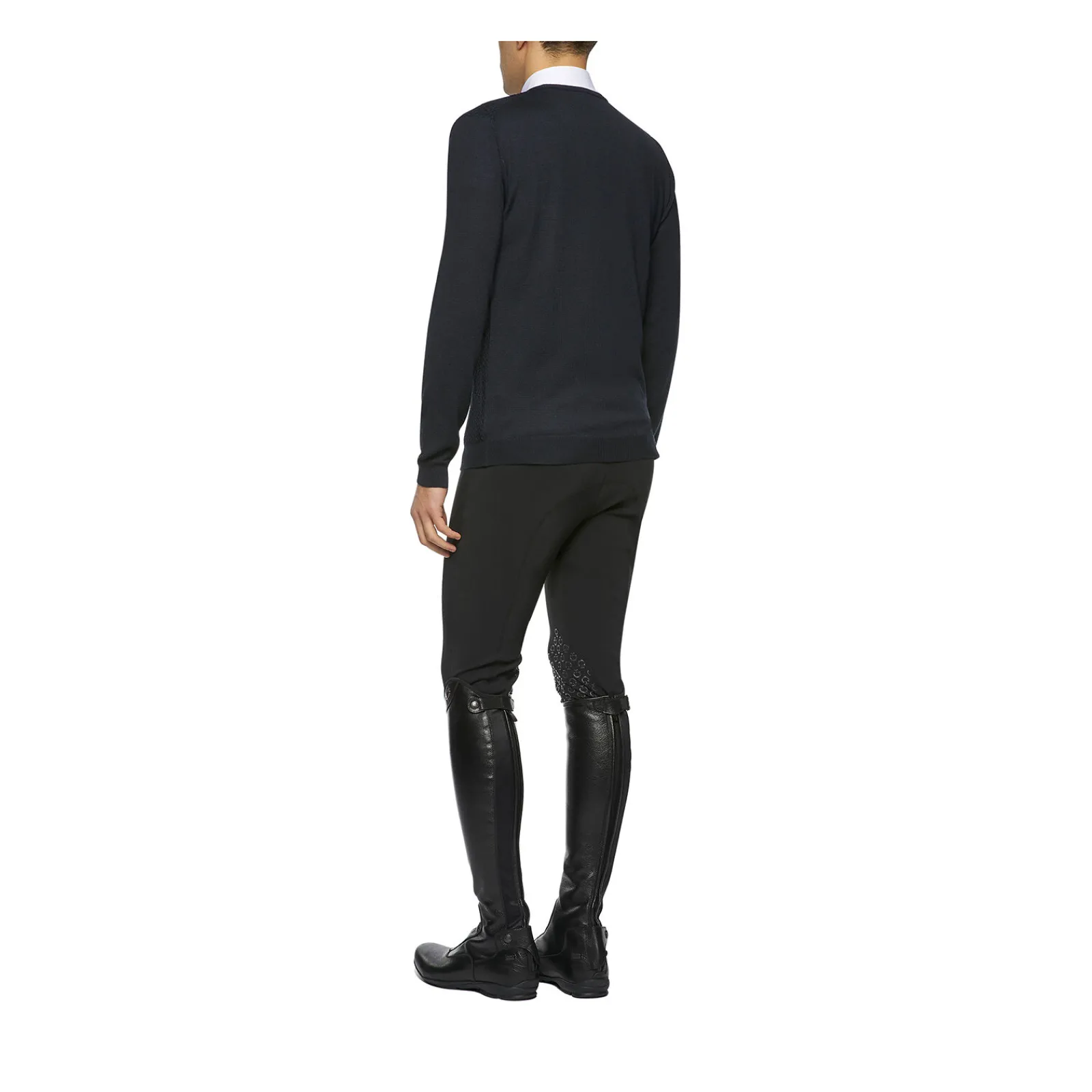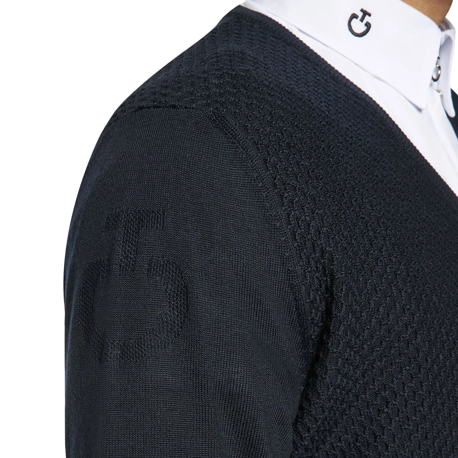 Denne herregenseren er laget av myk og varm ull, som er dekorert foran med bikubestruktur.Den høye kvaliteten på dette materialet passer perfekt til hverdagen eller til trening, og sørger for at kroppen holder en varm temperatur, selv på de kaldeste dager.Genseren kommer med V-hals og er dekorert med en brodert logo på skulderen.