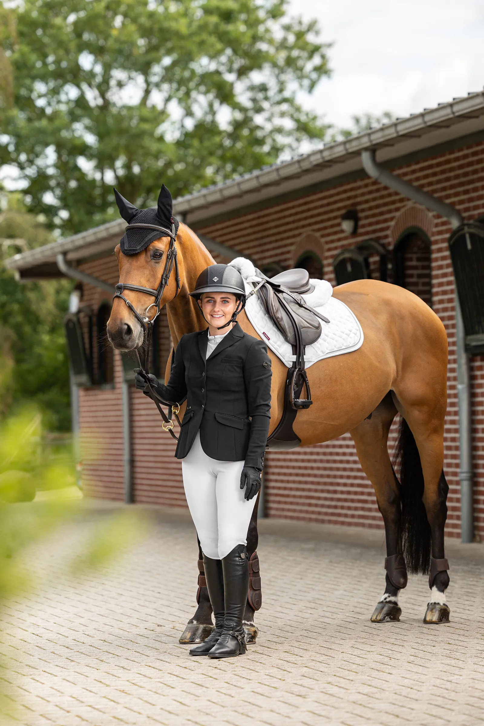 Kommer med en luksuriøs, myk semsket overside og et nytt, sofistikert, vattert mønster. Crystal Suede Close Contact sjabrak fra LeMieux gir et slankt og profesjonelt utseende til salen din. For et ekstra spesielt preg har LeMieux laget denne sjabraken med flott glitter og flettede kantdetaljer, noe som gir en nydelig utseende som skiller seg ut. Sjabraken er spesielt formet for å gi en sikker passform under framoverskårne sprangsaler, enten du skal ri på stevne eller bare trene hjemme i stallen. Den kommer også med den temperaturregulerende innsiden i bambus. Den trekker umiddelbart vekk svette og fukt fra hetsens hud for å holde den komfortabel i all slags vær. En annen fordel med bambus er at det minimerer friksjon, noe som gjør denne sjabraken veldig god til hester med sensitiv hud. Denne sjabraken gir optimal komfort med den ultramyke innsiden, beskyttet gjordområde i PU-lær og en høyere profil ved manken. I tillegg kommer gjordfestene med innvendige låsehemper for å gi flere valgmuligheter for innfesting. Lag et matchende sett med Crystal ørehette.