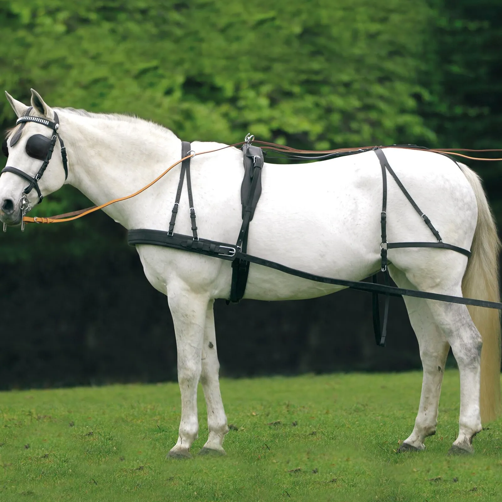 Robust brystsele laget av ekte lær, mykt polstret og forsterket med nylon.Kommer med kjørehodelag, kjøretømmer, bryst, salett, trekkliner, halereim og baksele.Kommer i en selepose.Se produktnummer 333331 for ponni og shetland-størrelser.