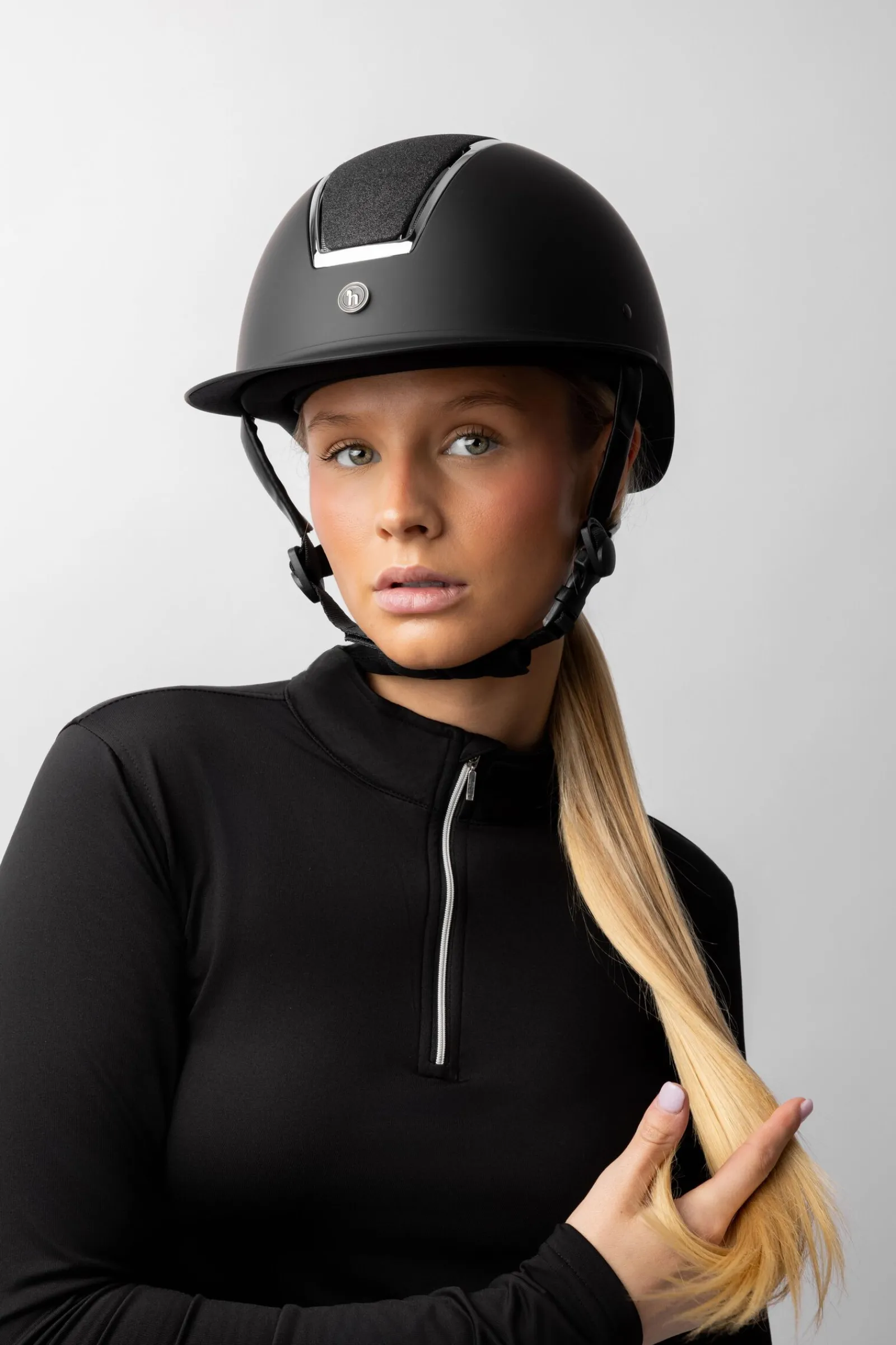 Horze Monarch hjelm er svært solid, og ventilasjonshullene gir komfort med god luftgjennomstrømning slik at hodet holder seg kjølig. De skinnende panelene med glitter på utsiden av hjelmen gir et snev av bling til ditt rideantrekk, og de kommer i flere stilige fargevariasjoner. Den brede skjermen gir ekstra beskyttelse. Skrusystemet gir deg mulighet til å tilpasse den slik at den sitter perfekt. En innside av memoryfoam omslutter ditt hode med komfort, samtidig som det gir beskyttelse dersom du skulle falle av. En fleksibel brem gir ekstra sikkerhet.