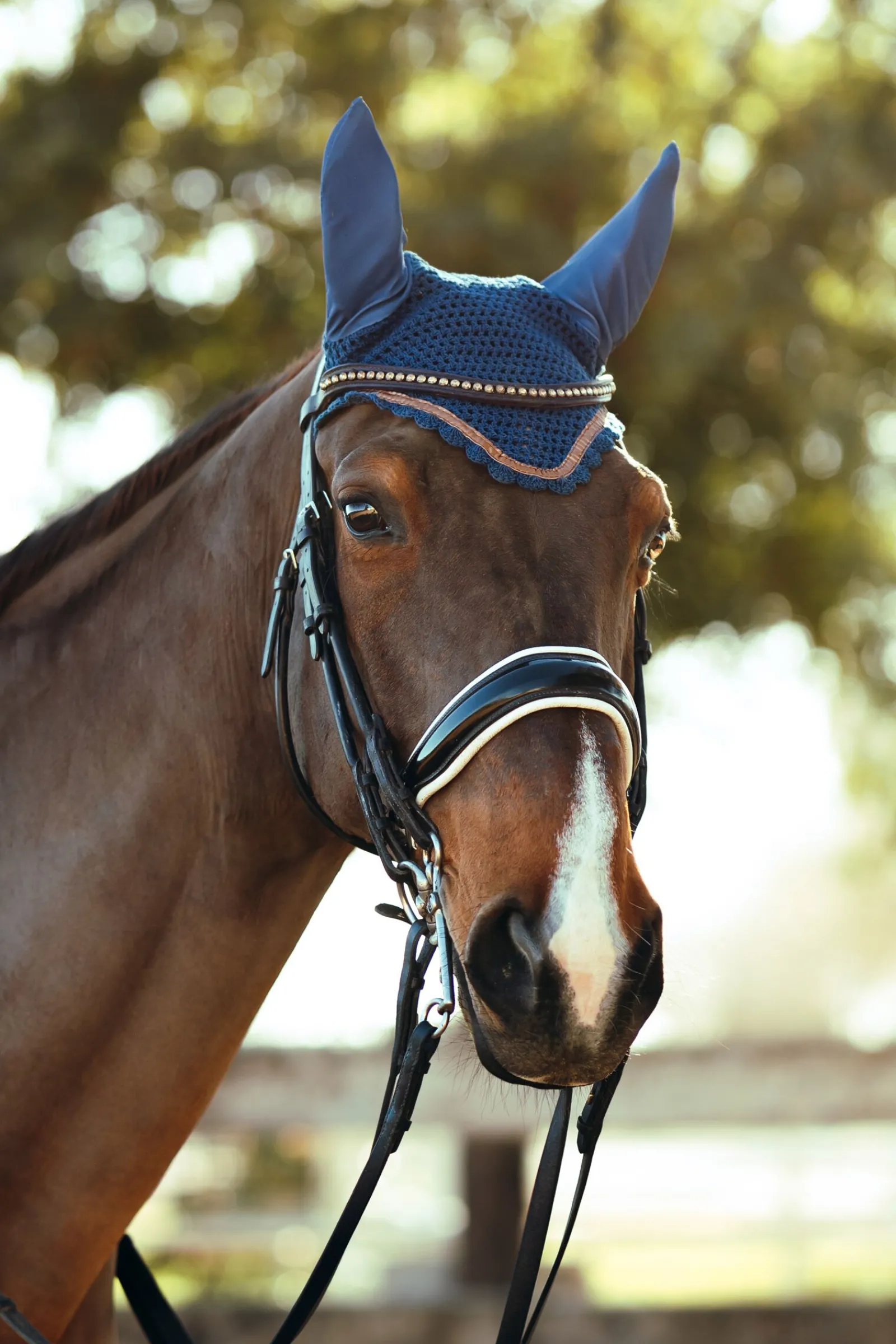 Horze Munich ørehette er laget av delikat hekling med elastiske ører i nydelige farger.Fronten er designet med en dyp bueform, og er dekorert med en bronsestripe som er et blikkfang.Bruk dem med vår Horze Munich pannebånd, sjabrak og stryksokker komplett antrekk!