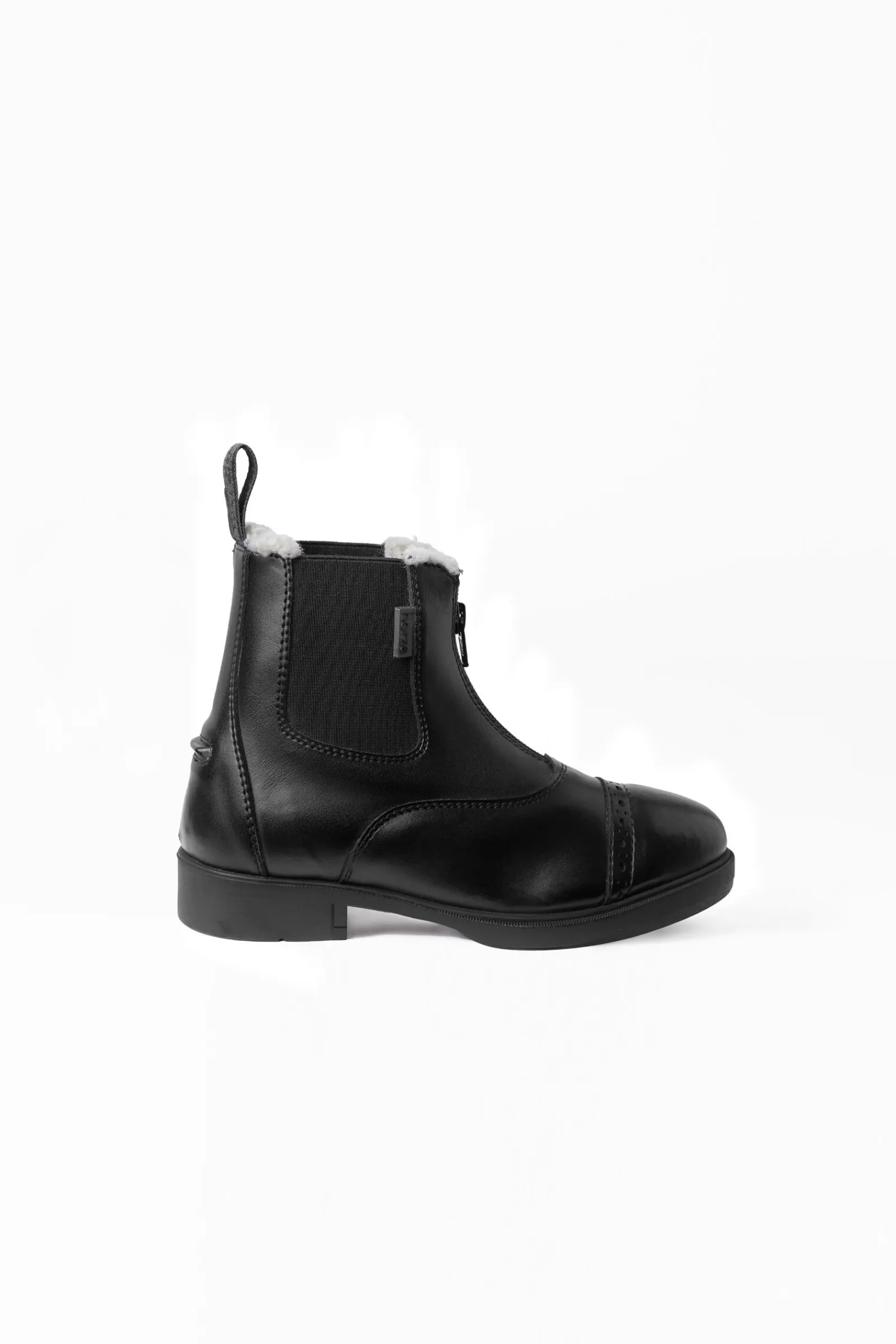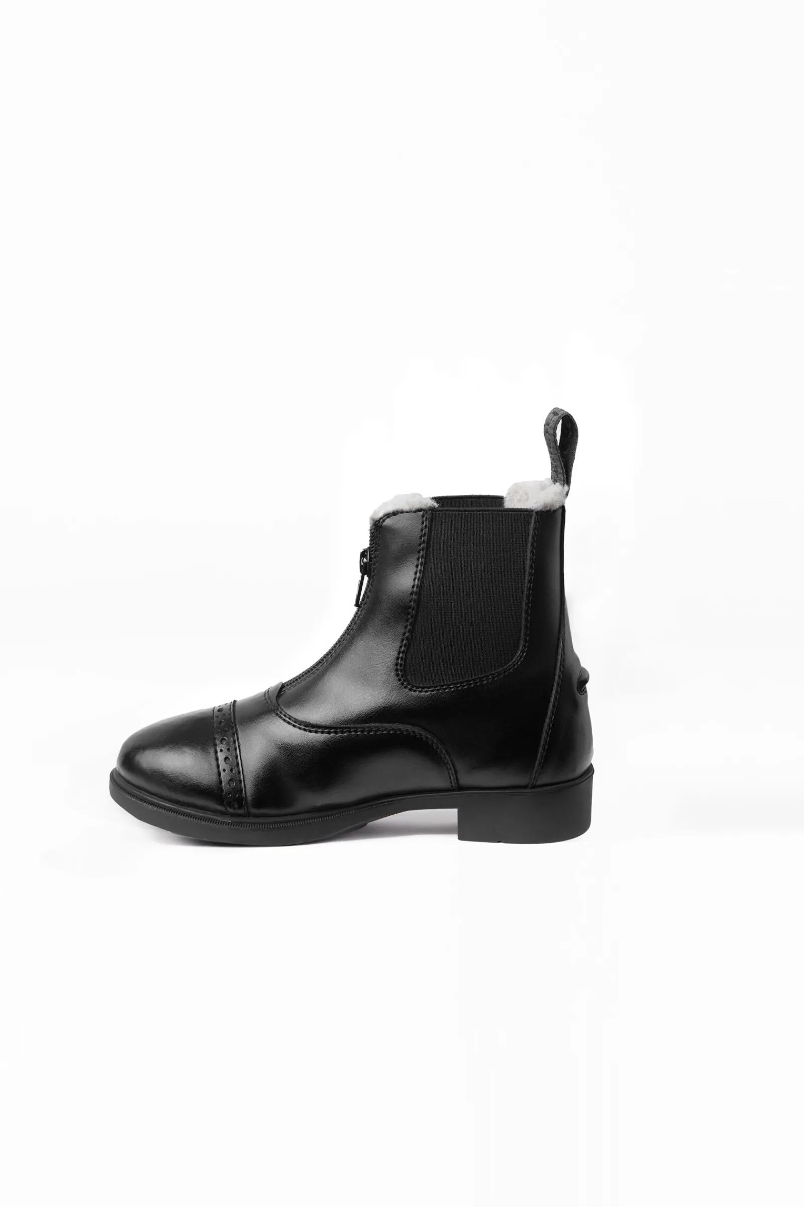 Disse jodhpurskoene har utseendet og følelsen til tradisjonelle stallsko, men har en rask glidelås foran, noe som gjør det enkelt for barn å ta dem på seg.Det gode håndverket kombinerer kvalitet og en klassisk stil.Det myke, syntetiske lærlignende materialet er lett å ta vare på, og ser alltid nytt ut.Fuskepels holder føttene til den lille rytteren varme.Disse skoene kommer til en rimelig pris for bruk i både stallen og til ridning, med en kvalitet som vil vare.