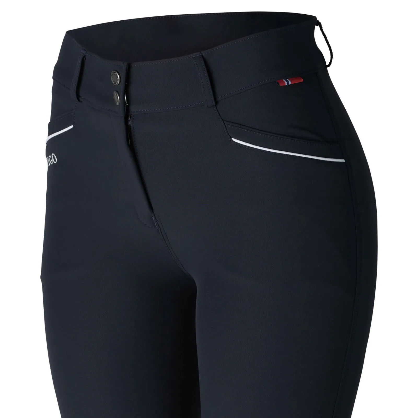 B Vertigo Patricia ridebukser har en optimal passform.Spesielt fôr foran på innsiden gir støtte, og et høyt liv forbedrer posituren.Kneforsterking med silikon gir det mye fleksibilitet i salen.Lommer foran holder eiendelene dine trygge.Kontrastsøm på lommene gir et høyklassisk utseende.