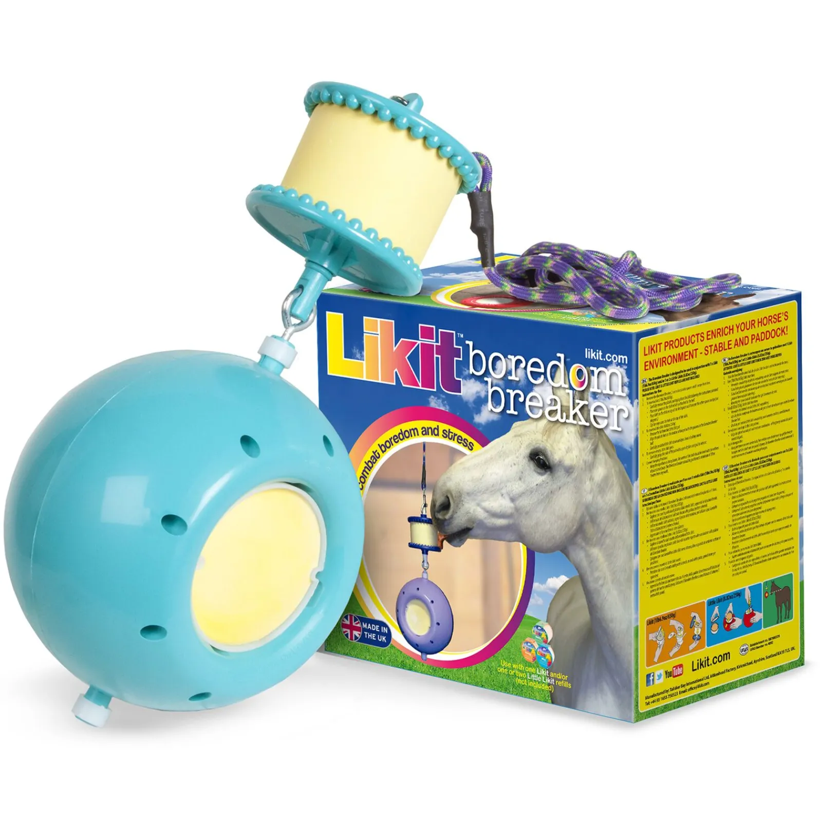 Smart kombinasjon av slikkesteinholder og lekeball, som enkelt henges i boksen eller paddocken. For meningsfylt tidsfordriv for hesten – reduserer kjedsomhet og stress. Passer for to Likits på 250 gram og en Likit på 650 gram. Leveres uten slikkesteinene! Du finner mer infomasjon om Likit på hjemmesiden. Likit slikkesteiner er hovedsakelig laget av naturlig vitaminkonsentrert druesukkermelasse, og all berarbeidet plast er laget av feilfritt materiale av europeisk opprinnelse. Produksjonen foregår med den høyeste kvalitetskontroll for å sikre en jevnt høy kvalitet. Hesten holdes leken og kontinuerlig opptatt, slik at kjedsomhet og rastløshet i boksen eller paddocken kan unngås. Bruken av Likit-produkter er også anbefalt av velkjente hestespesialister på adferdsforskning ved universitetet ved Cornell (USA) og Bristol (England). Gi hestepartneren din tidsfordrivet den fortjener – selv når du ikke kan være der selv!