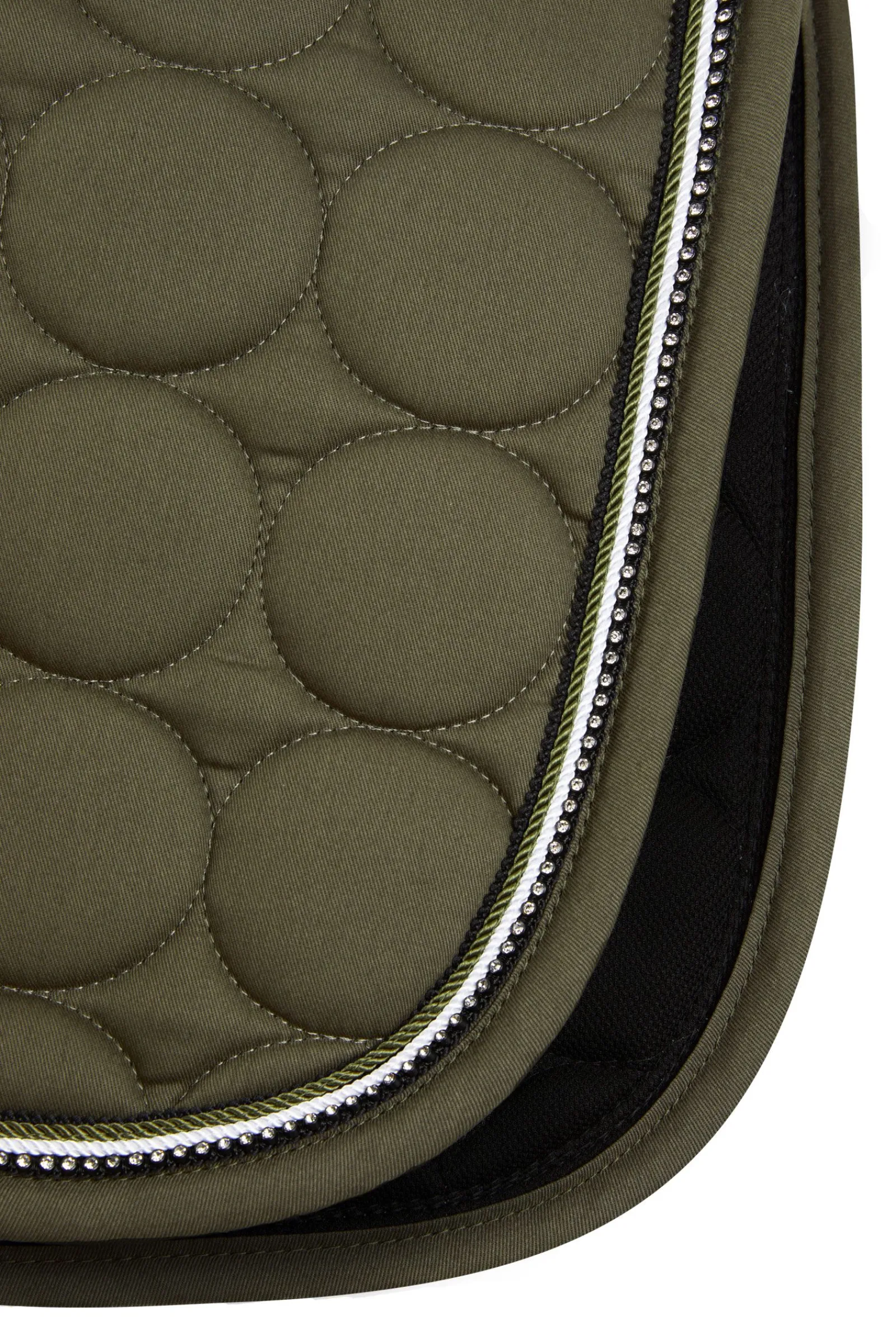Horze Marquess sjabrak er laget med en hurtigtørkende innside som trekker vekk fukt.Den myke polstringen sikrer en komfortabel passform.Kanten er dekorert med glitrende snor og krystaller, noe som gir denne sjabraken et diskret preg av glitter.Bruk den med Marquess ørehette (#22924) for et komplett utseende.