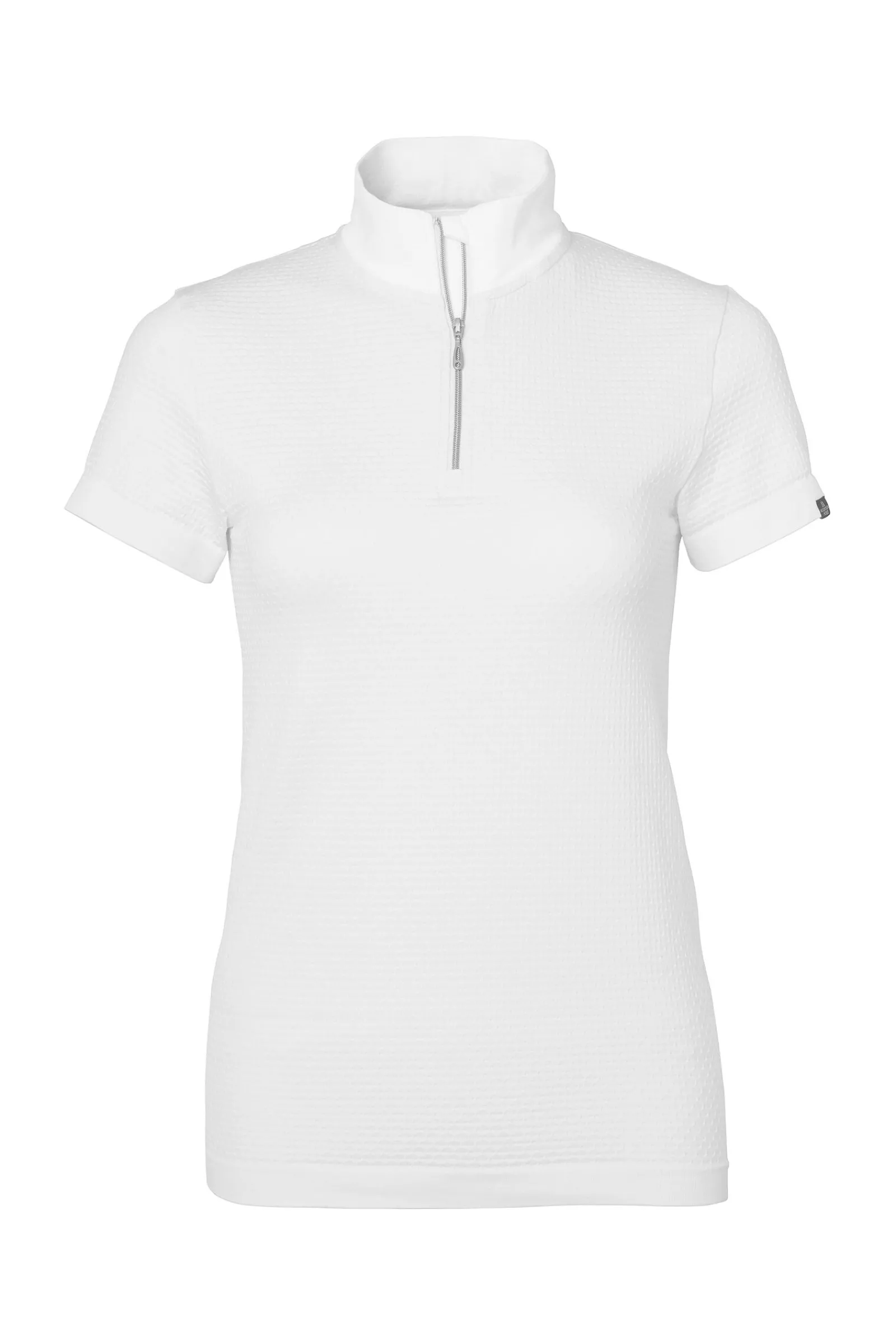 Feminin, sømløs, teknisk stevnetopp med en hvit krage som passer for stevne.