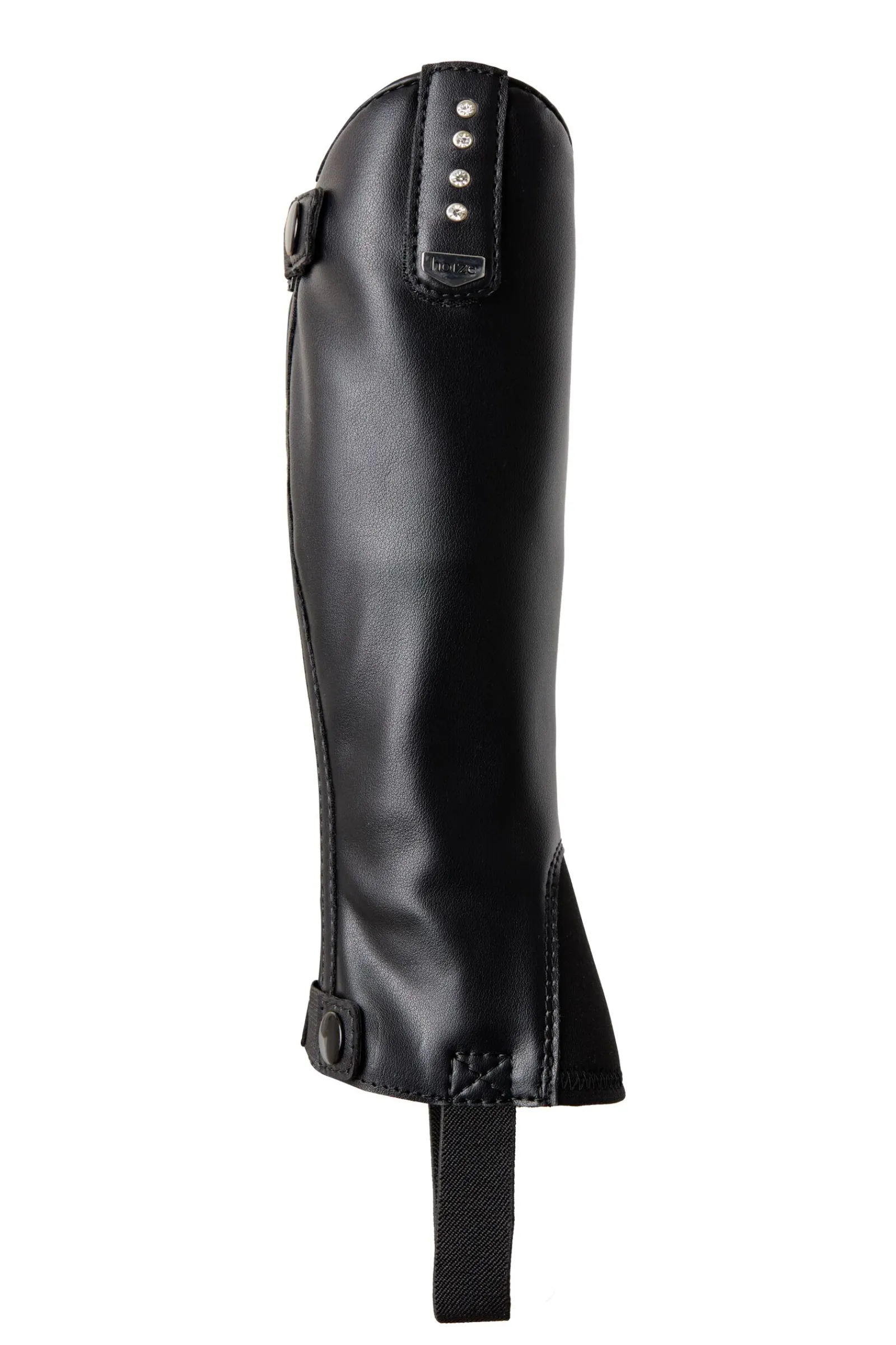 Du vil vel ikke bruke vanlige, kjedelige leggchaps når du er i stallen? Disse er en perfekt match med Portland jodhpursko til barn (#38268), med de delikate krystalldetaljene.De kommer med en utskiftbar kant, hvor en har krystaller som matcher skoene, og en med enklere utseende.Det elastiske, syntetiske læret er komfortabelt å bruke og sikrer en tett passform rundt beinet.Den holdbare YKK-glidelåsen bak er sikret med to knapper (topp og bunn), med strikk.En elastisk stropp går rundt skoen, og en myk neoprenflapp dekker toppen.