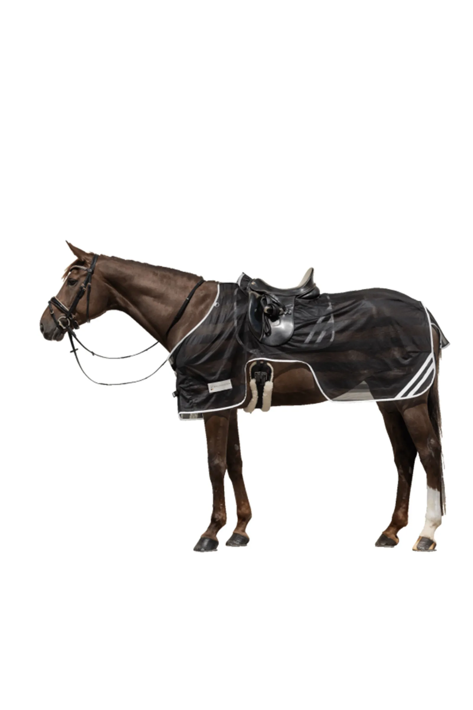 Lightweight exercise sheet in reflective fabric and with reflective border all round.With cut-out for saddle and fillet string