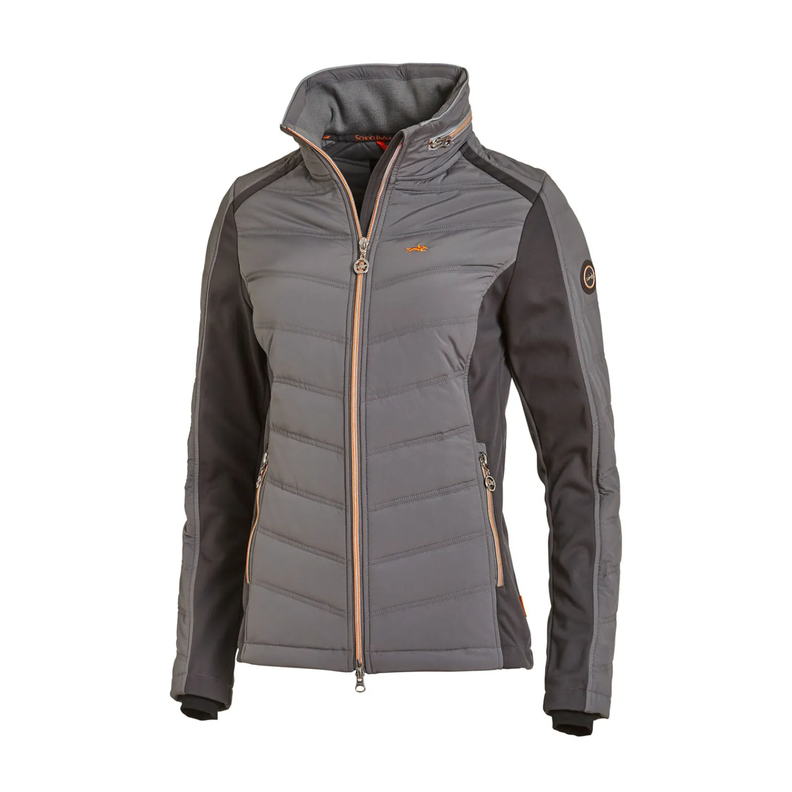 Mens fronten av jakken er utsmykket med et klassisk, vattert mønster, er armene og ryggen laget av softshell, og har stilige detaljer i kontrastfarger.Samira er perfekt mellom årstidene ettersom jakken er superlett, pustende og også vanntett.Med den gode passformen, omfavner den kroppen, mens en toveis glidelås sikrer tilstrekkelig bevegelsesfrihet på hesteryggen.