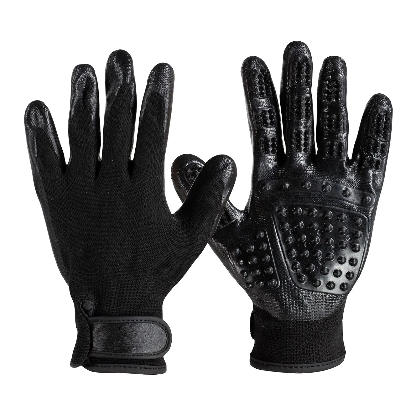 Et praktisk par med pussehansker som gir deg muligheten til å pusse og massere hesten din på samme tid!