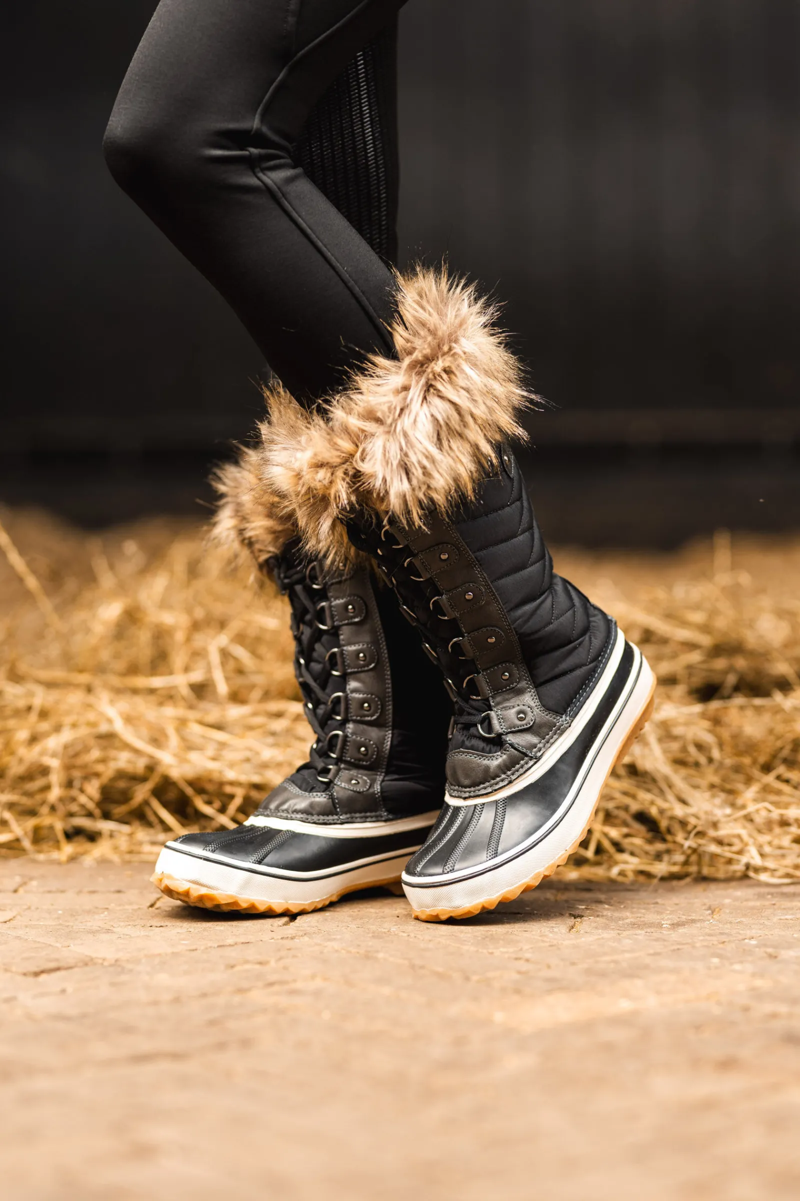 Disse skoene kommer med en gummisåle og sider, noe som gir utmerket grep og holdbarhet. Oversiden er laget av oxfordmateriale, noe som gir et stilig preg på skoen. Høydepunktet med disse skoene er den stilige innsiden i pels som strekker seg over toppen og gir ekstra varme og en behagelig følelse. Enten du skal ut å ri, eller ut på dine daglige aktiviteter så er Horze vintersko med pelsfôr det perfekte valget for å holde beina dine behagelige og beskyttet i det kalde været.
