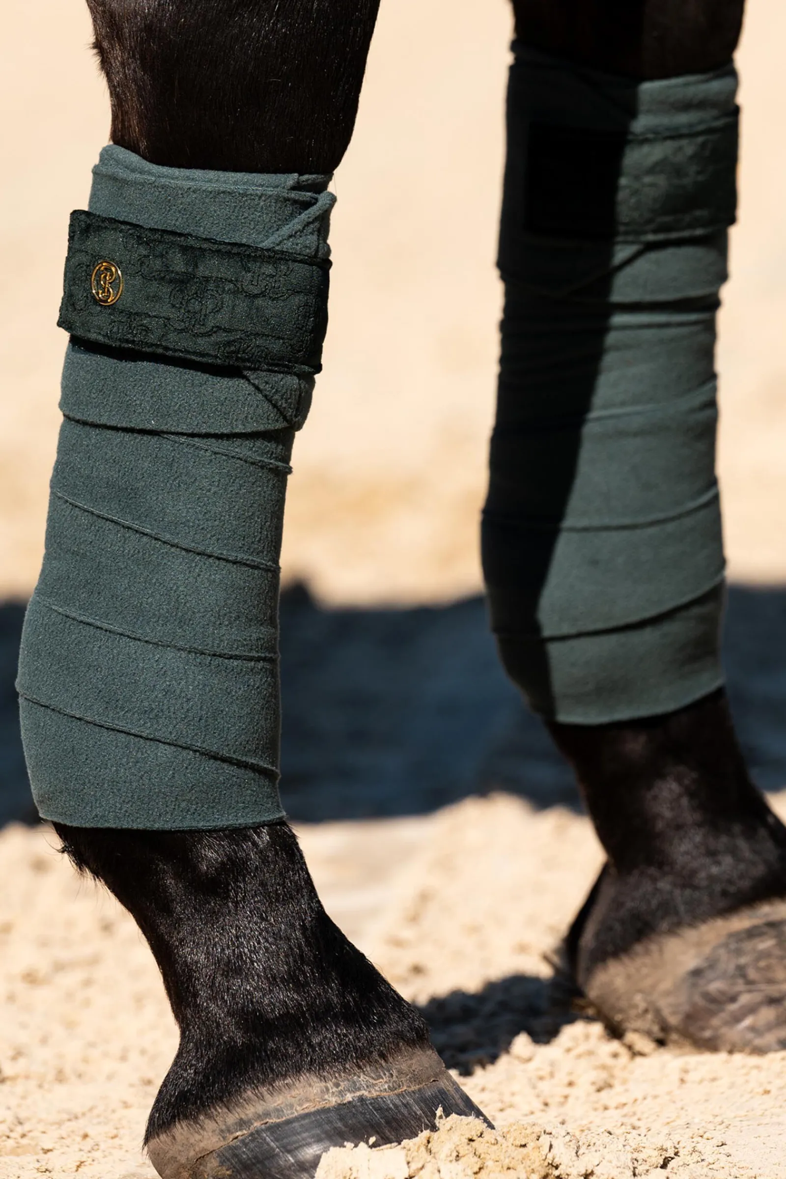 Myke fleecebandasjer med lukkeflik i nytt monogramquilt for å matche Velvet Monogram sjabraken.