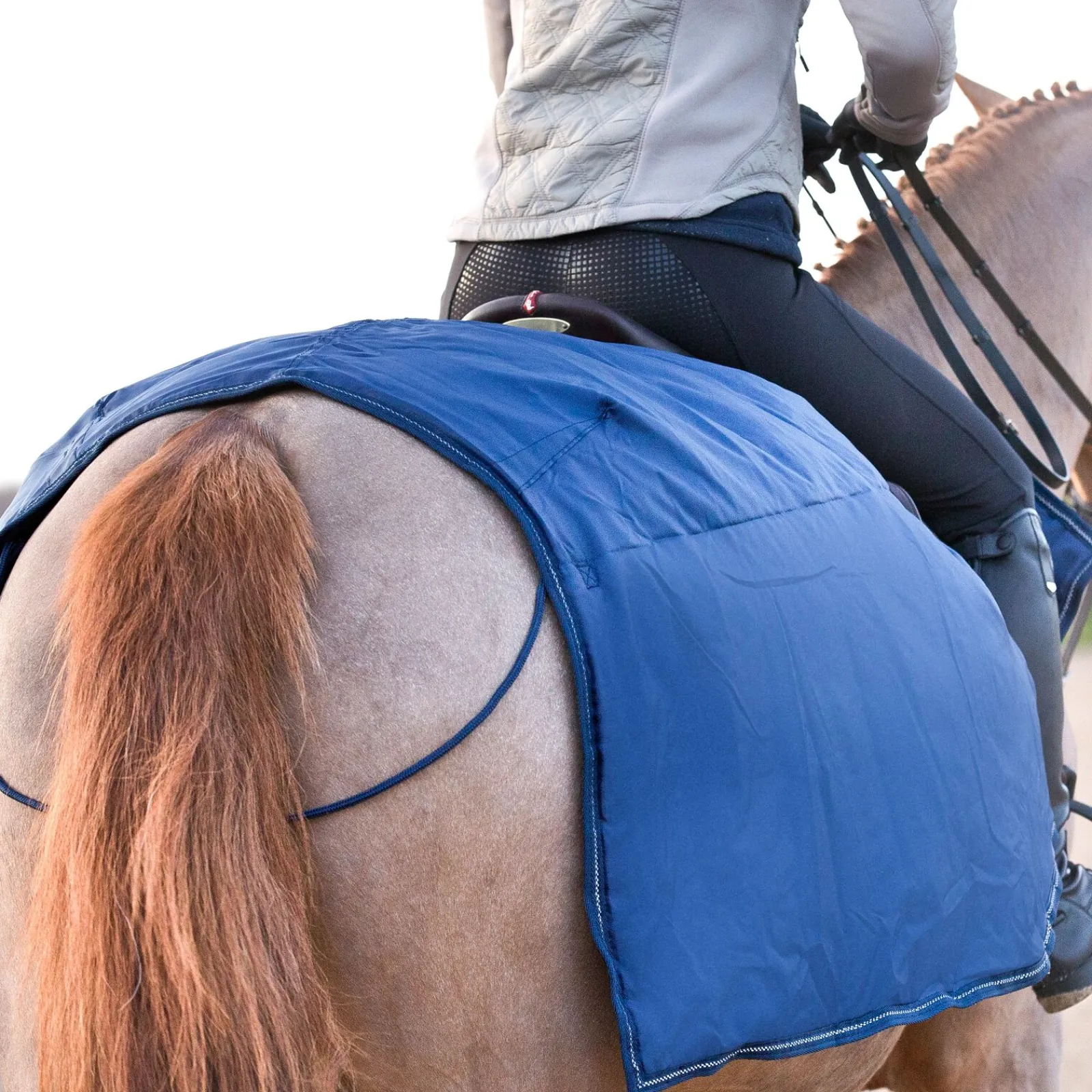 Dette varme og myke, lett fôrete ridedekkenet vil holde hestens lender tildekket og forhindrer at den fryses mens du trener i all slags vær. Lendedekkenet har et avrundet snitt nær leggen for maksimal kontakt med hesten. Dette sporty og praktiske dekkenet festet enkelt foran på salen med borrelås.