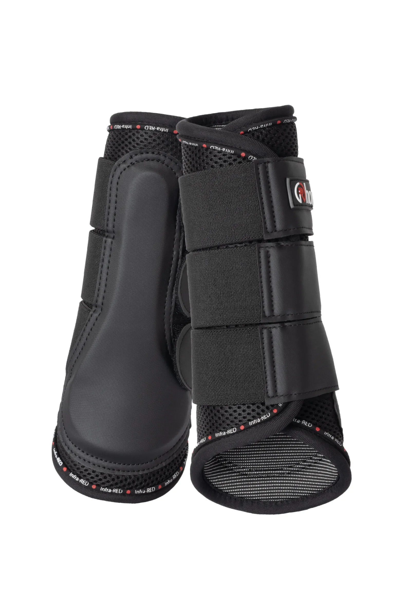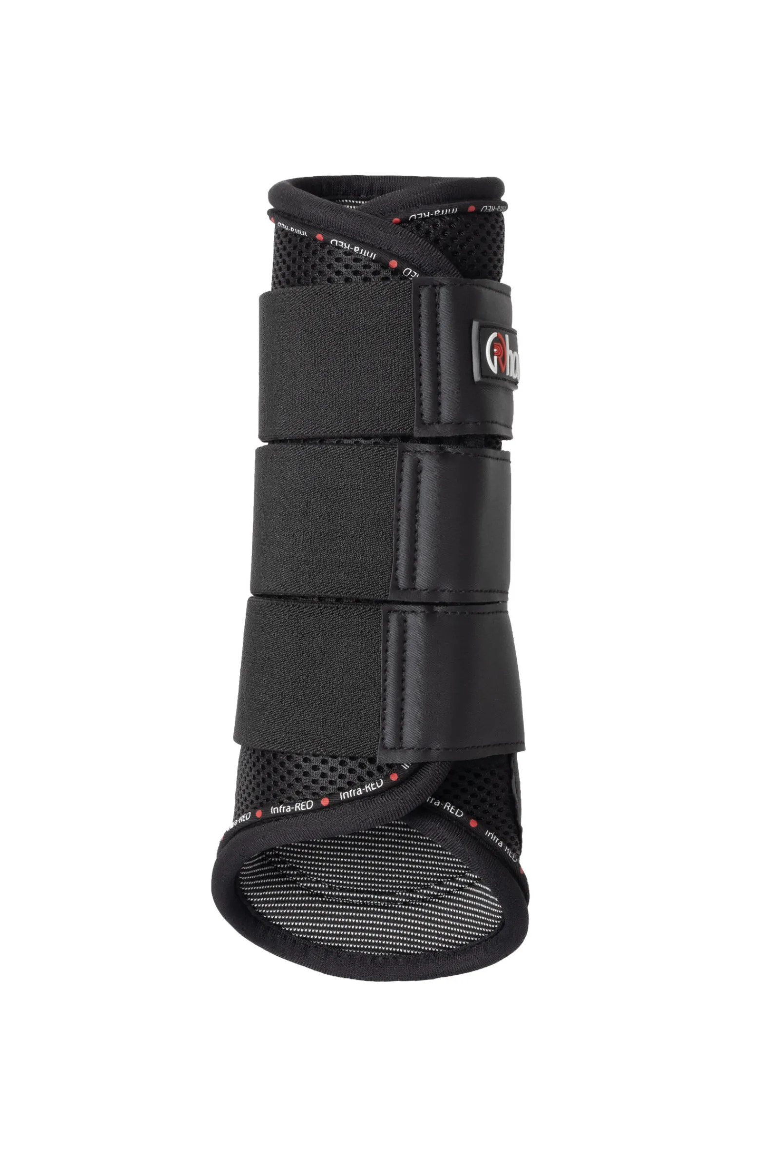Pustende stryksokker med infrarød innside og stryksone i holdbar ballistisk nylon. De keramiske partiklene som er vevd inn på innsiden absorberer hestens kroppsenergi og frigjør lange, infrarøde stråler som trenger dypt gjennom huden og har en stimulerende effekt på blodsirkulasjonen i beinet. Dette forbereder beinet på de belastninger av sener og ledd som kommer under trening.