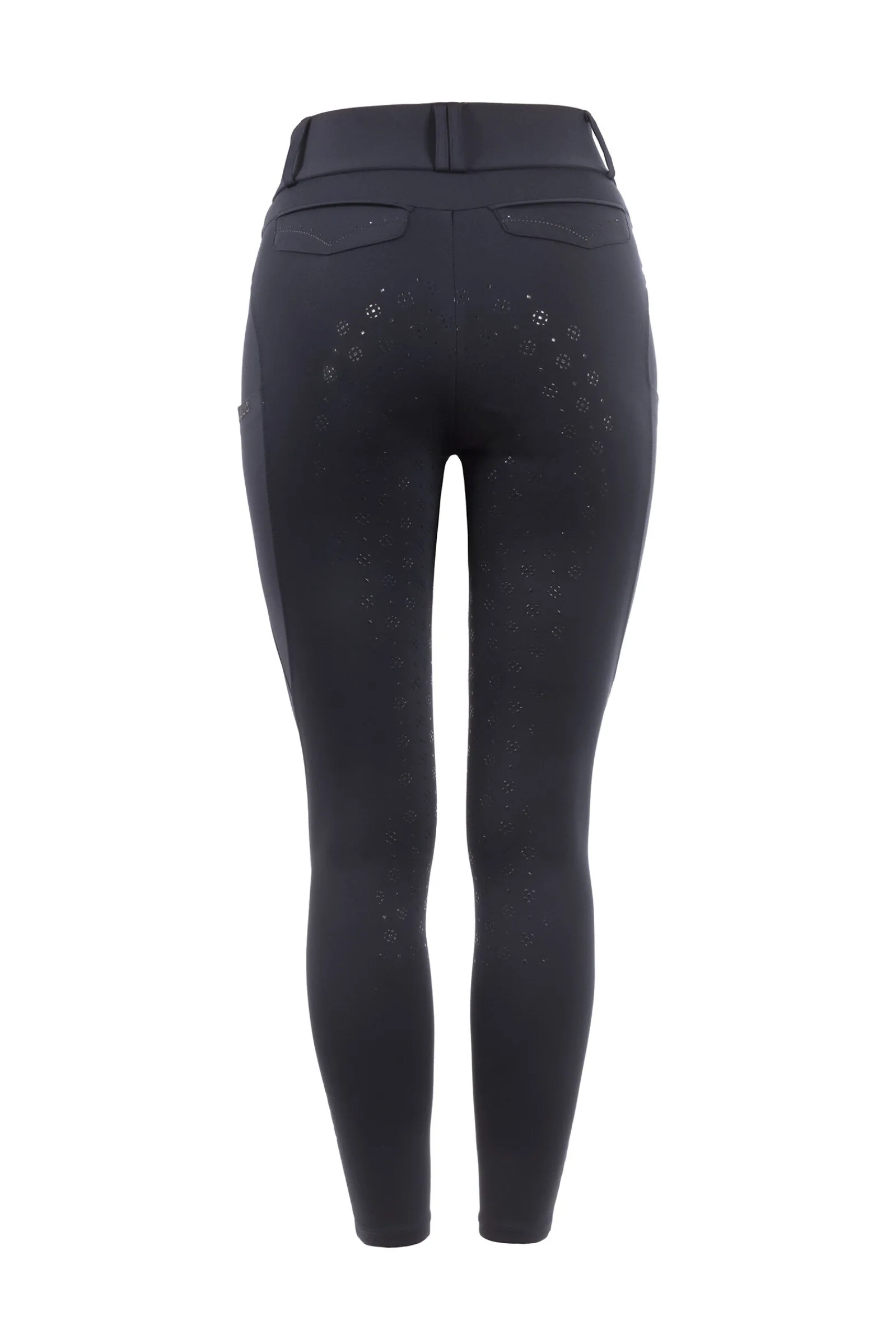 - Komfortable rideleggins med utseendet til klassiske ridebukser, forsynt med gnistrende detaljer