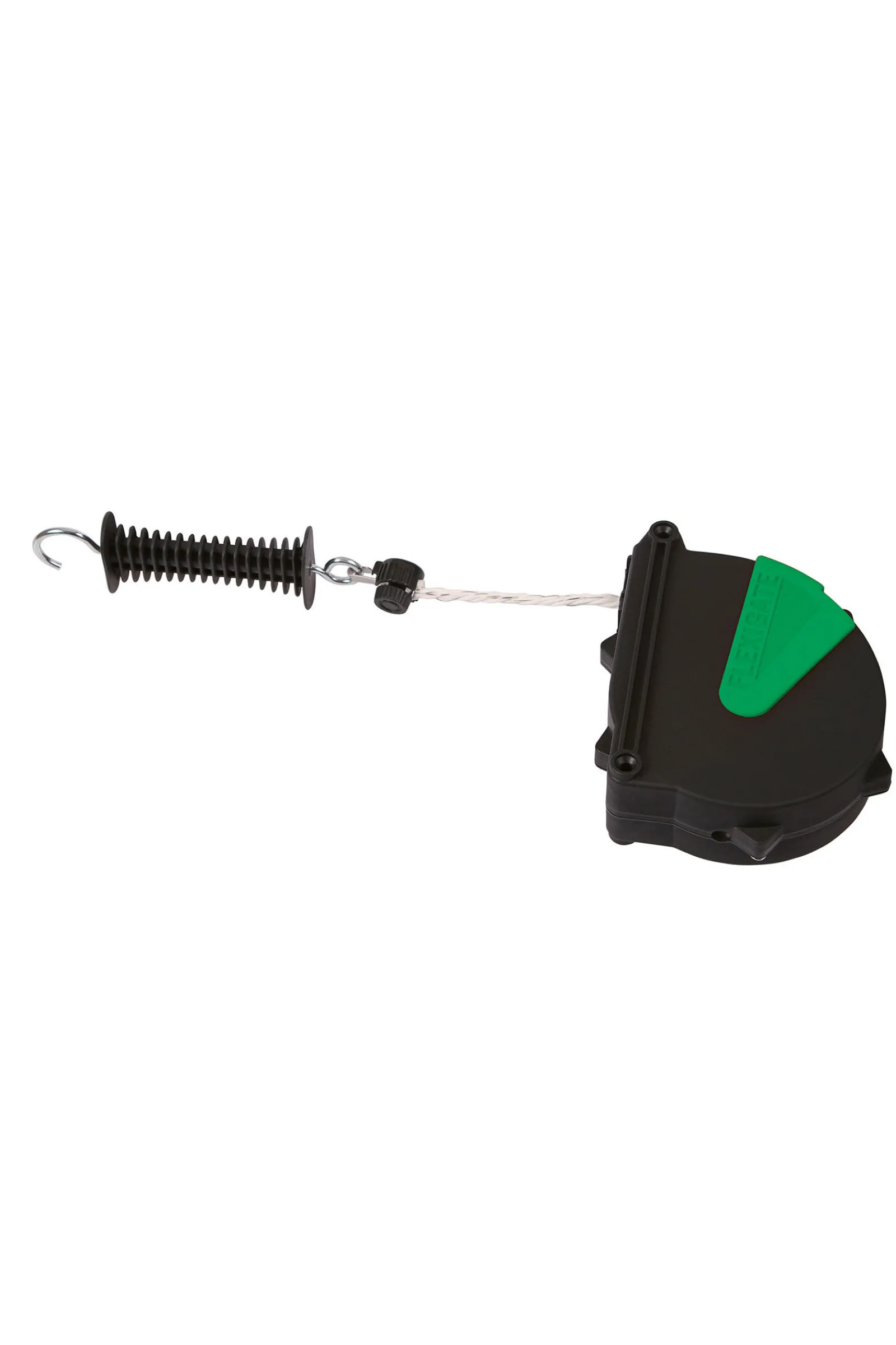 Fleksiporten gjør det enkelt for deg å gå inn gjennom strømgjerdet. Båndet eller tauet rulles automatisk opp av en stålfjær.