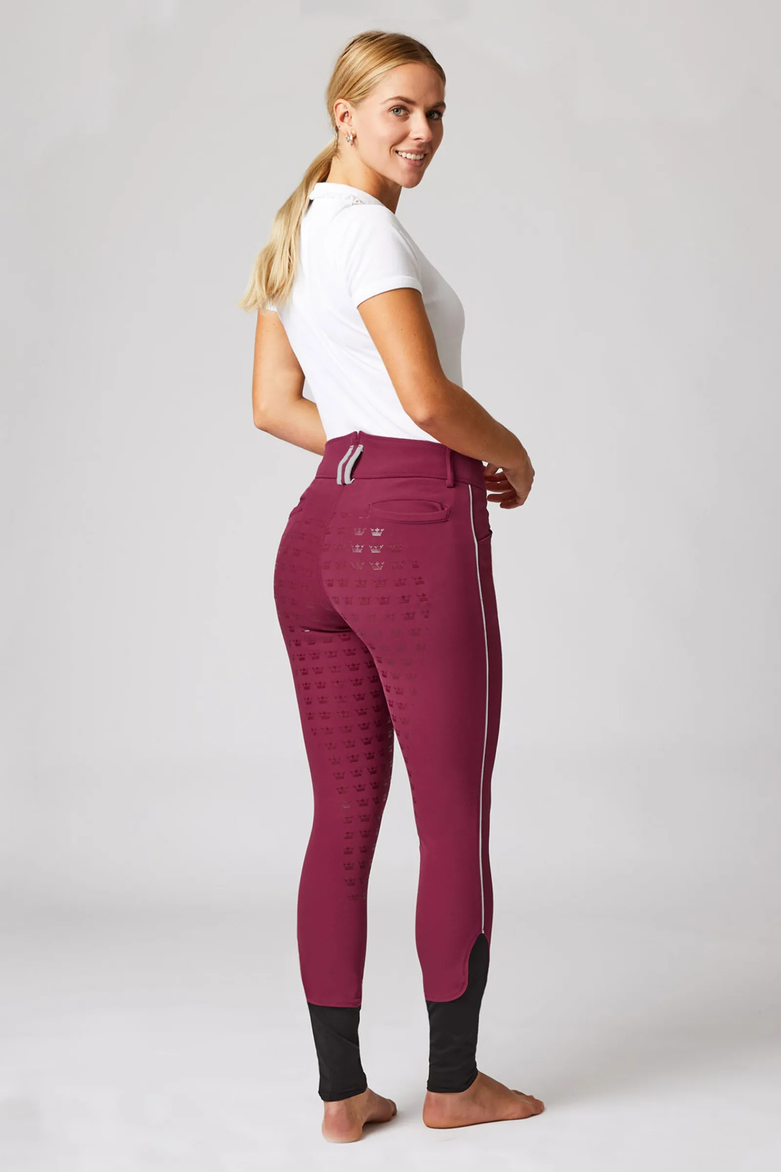 Sale Helforsterkede ridebukser med kontrastbånd og høyt liv, dame Helforsterkede Ridebukser