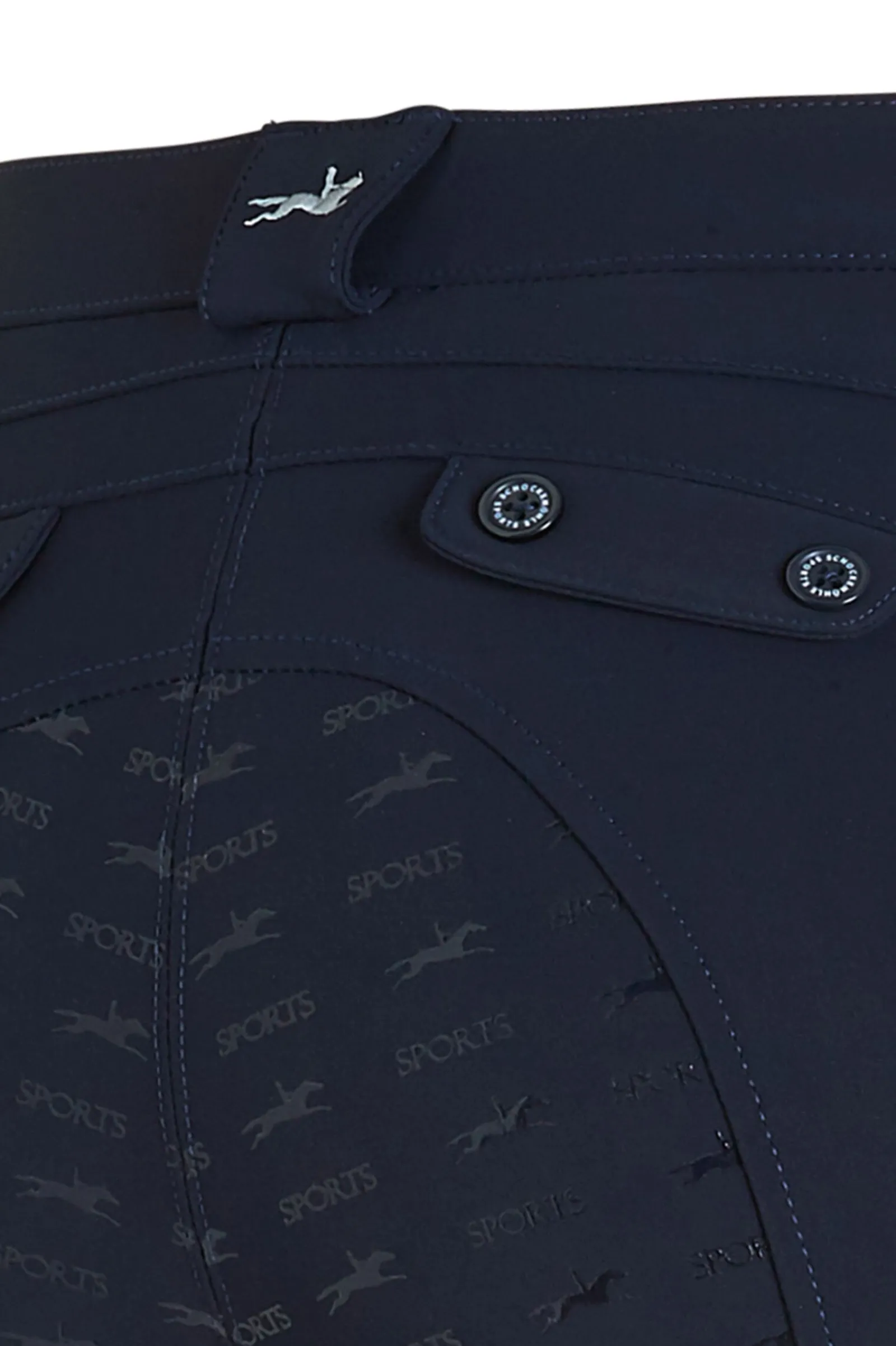 A sporty and cool look characterizes the breeches Jolene FS from Schockemöhle Sports. They adapt to the body shape very well, but are dimensionally stable and thus give the rider a sporty silhouette. Flap pockets with two buttons, a horse logo embroidery on the back wide belt loop and a logo silicone print on the left side offer nice visual details. In addition, the breeches have practical cell phone pockets on the sides.