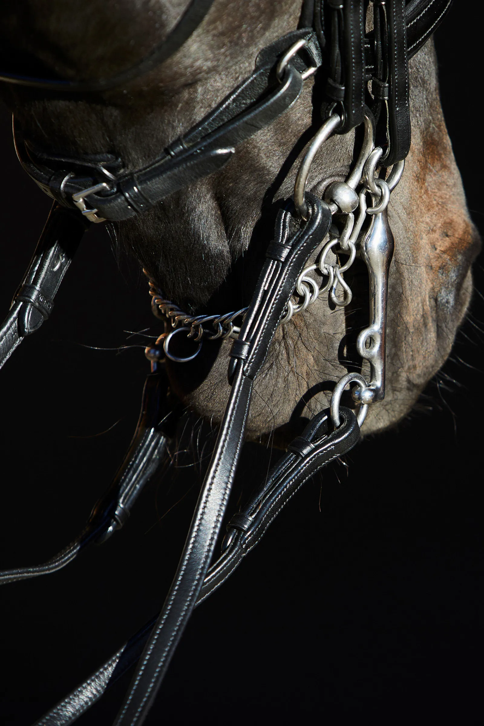 Kieffer® Ultrasoft Amy kandarhodelag kommer med pullback nesereim med en meget komfortabel form som tar hensyn til hestens sensitive hode, med alle ansiktsnerver og blodkar.Suksessen med konseptet til de vanlige anatomiske Kieffer hodelagene er nå også tilgjengelig som en eksklusiv kandar-modell.Det anatomisk formede nakkestykket ‘Comfort’ med smørmyk kontaktflate og cut-back ved ørene sikrer mild trykkfordeling på nakken.Den like godt polstrede og anatomisk formede nesereimen med avrundet form passer perfekt på hestens hode, og unngår de mest sensitive nervene.Den elegante, buede nesereimen i blankt lær og pannebåndet dekorert med hvite krystaller gir en ordentlig «WOW»-effekt på dressurbanen.
