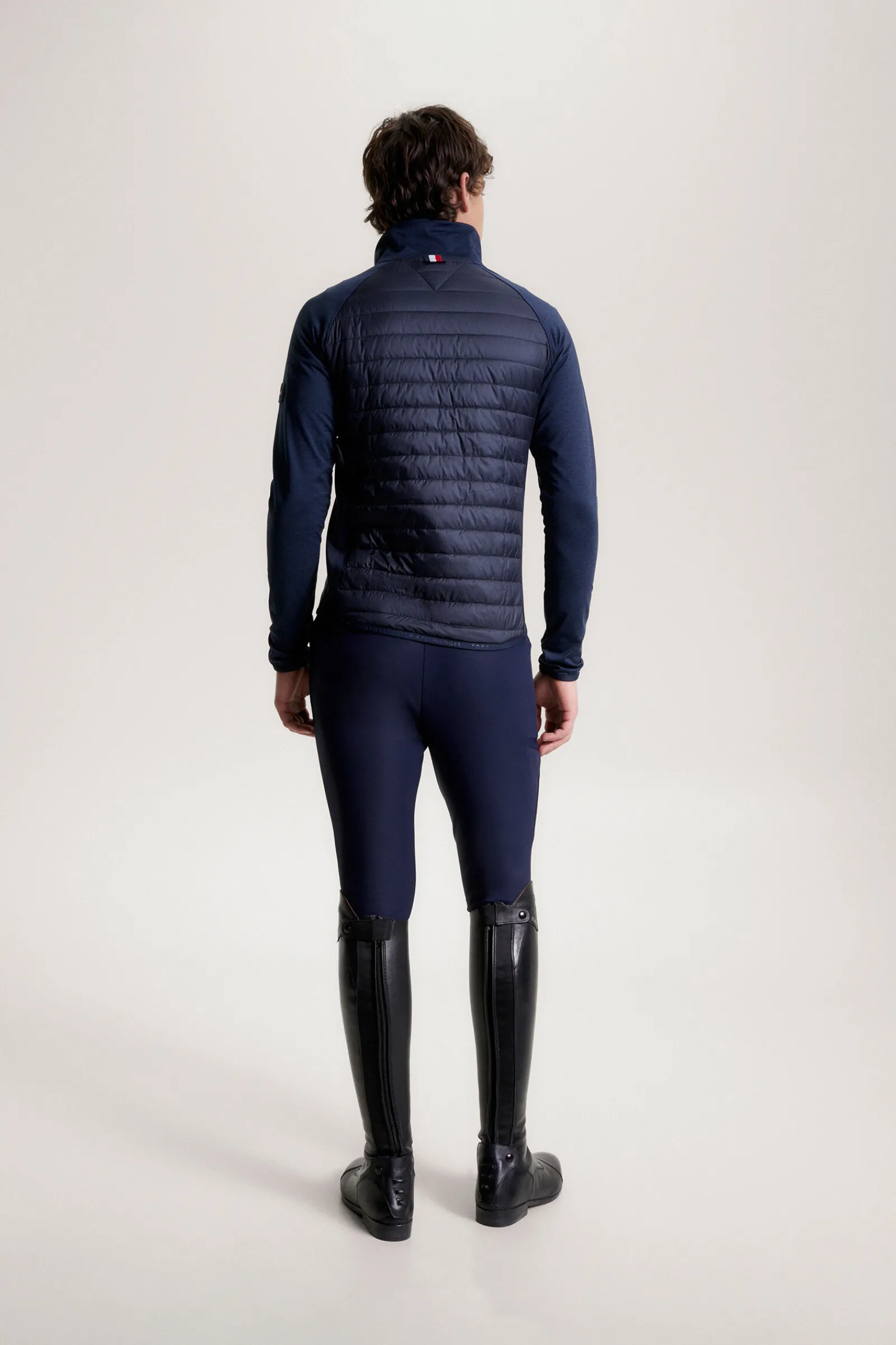 Perfekt for å holde deg varm samtidig som den gir maksimal fleksibilitet. Vår hybridjakke har en stretch-erme og sidepaneler for mer bevegelsesfrihet. Denne jakken er designet med reaktivt varmebalansestoff og er laget for å frigjøre varme i varmere temperaturer og låse den inne når været avkjøles. Med tomaterialskonstruksjon for komfort og ytelse, reflekterende Tommy Hilfiger-logotrykk på brystet. 100 % resirkulert polstring inni for den mer bærekraftig bevisste rytteren.